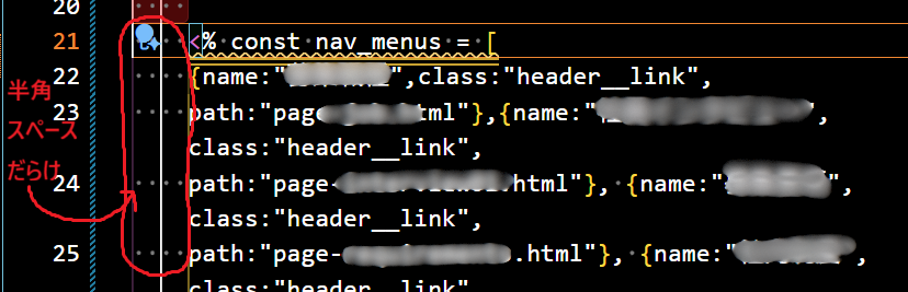 **.ejs内で、 配列で項目を定義している部分でエラーが発生。